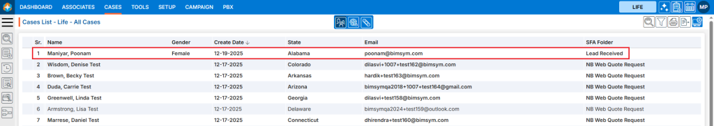 11. Once the information is saved successfully, the case will be securely stored in the system and will appear in the Cases List and click on it to open the case details for review, updates, or further actions as needed.