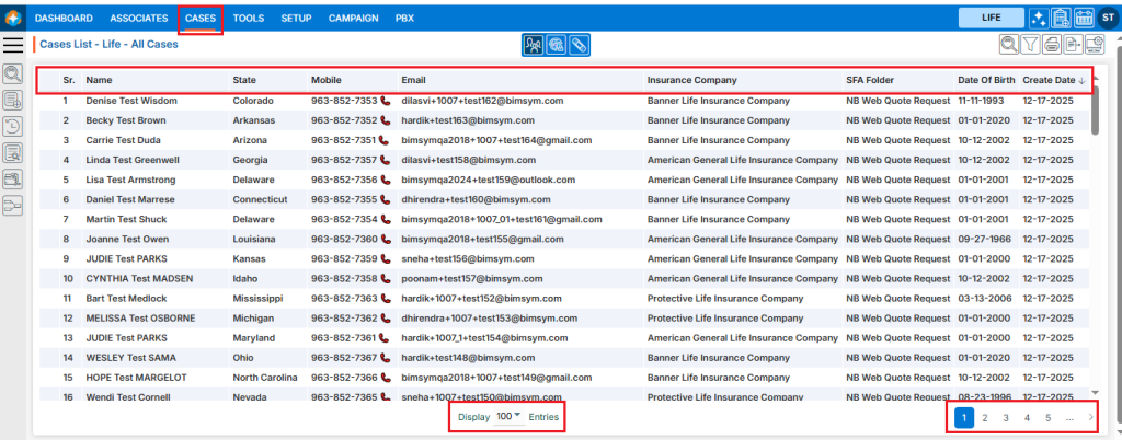 1. Navigate to the ‘CASES’ tab, where you will find the Cases List – All Cases.