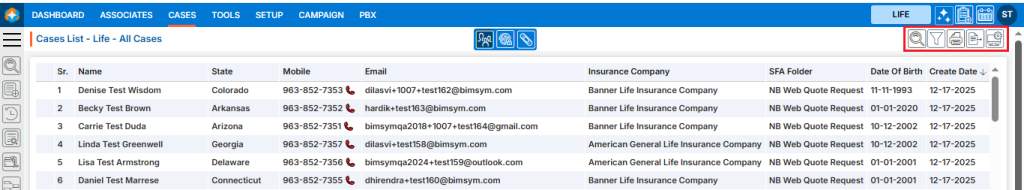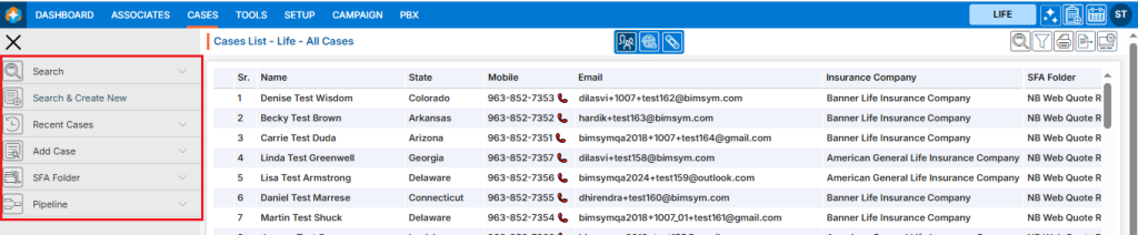 Cases List – All Cases – showing all cases available in the system other than cases available in Trash and Archive SFA Folder.