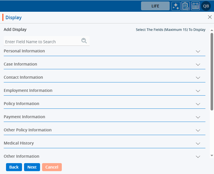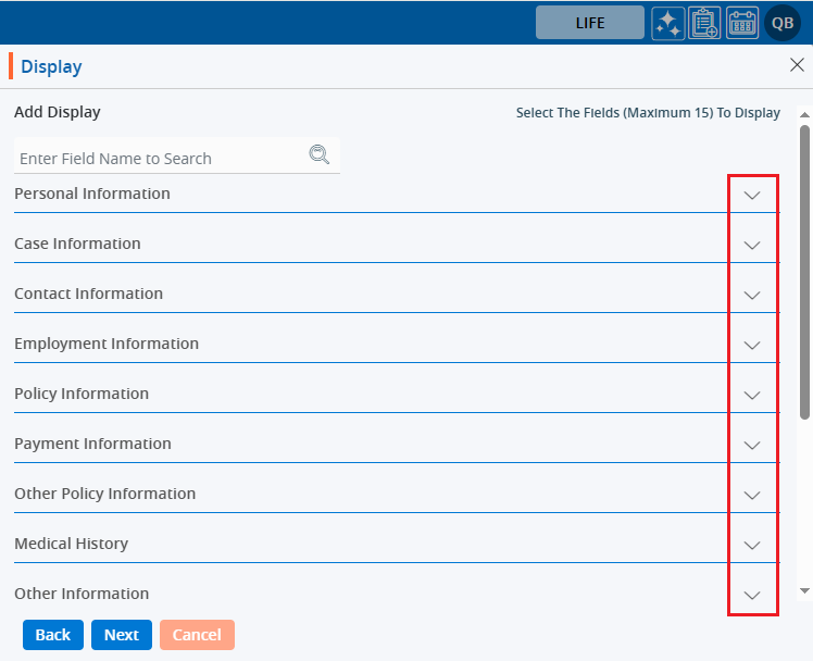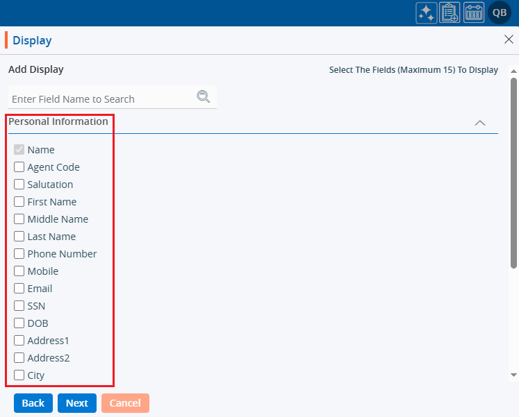 12. Clicking ‘Back’ will return the user to the first page of the ‘Filter’ window.