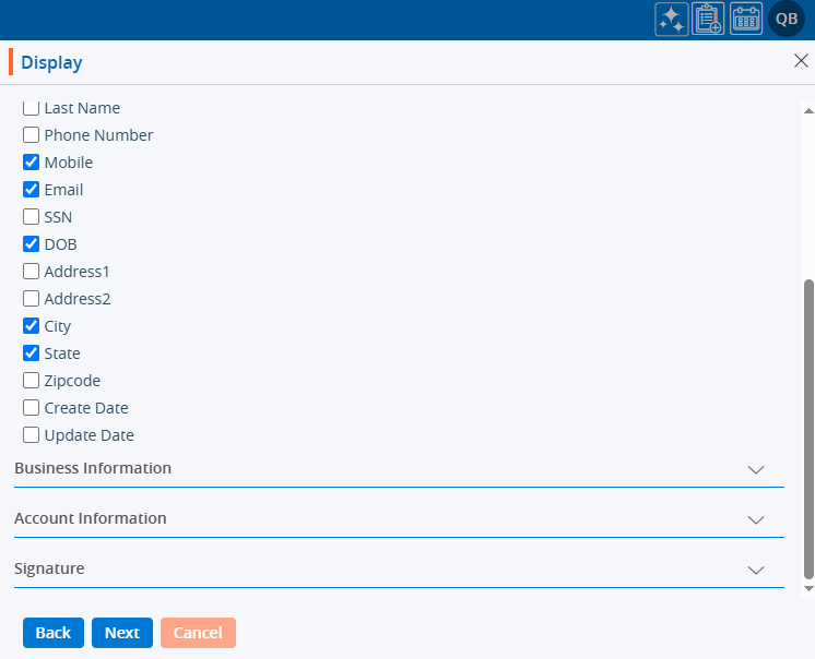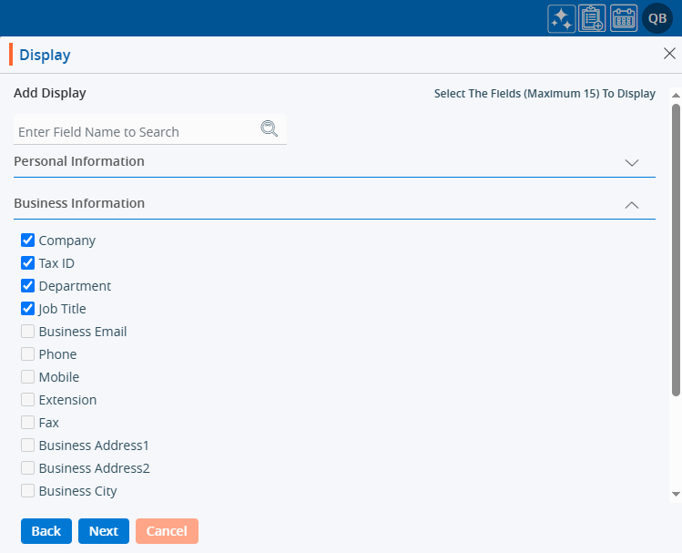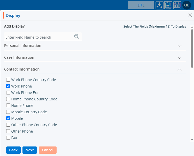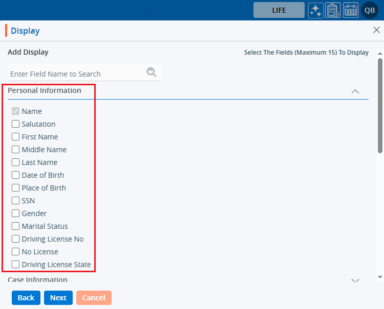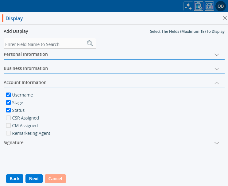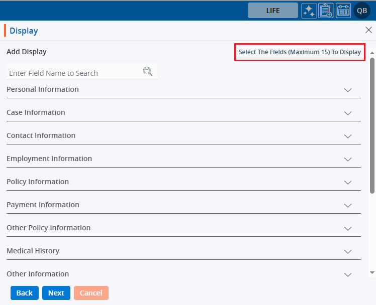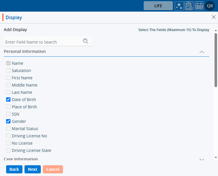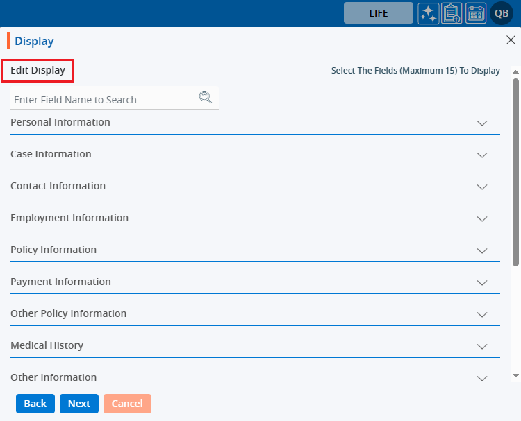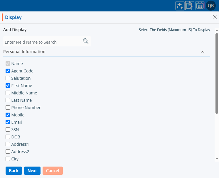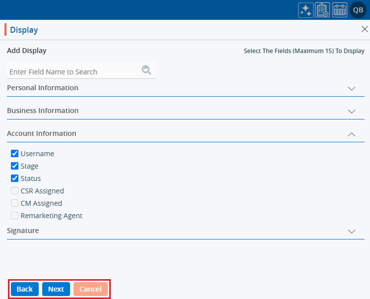 b. The selected fields and criteria will be greyed out and cannot be edited.