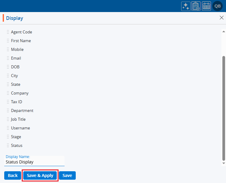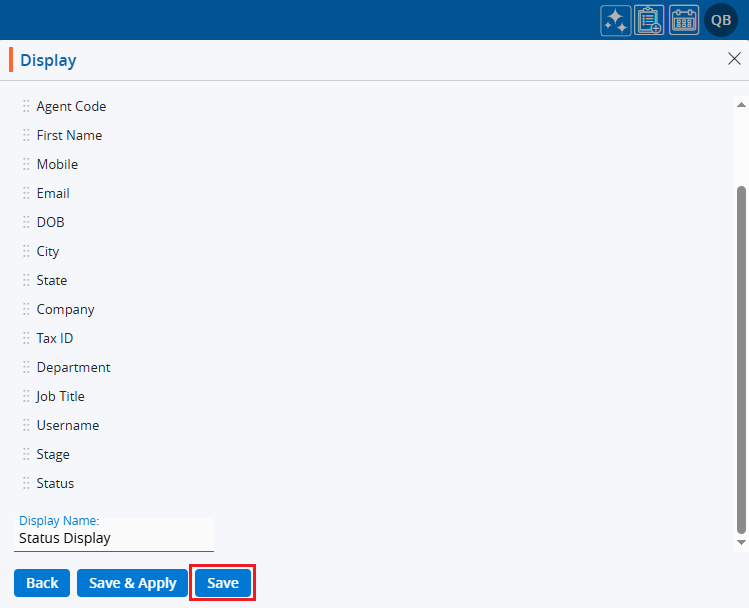 13. Clicking Save will only save the filter, displaying it in the filter listing (it will not be applied to the listing).