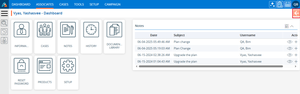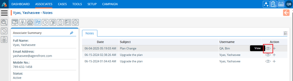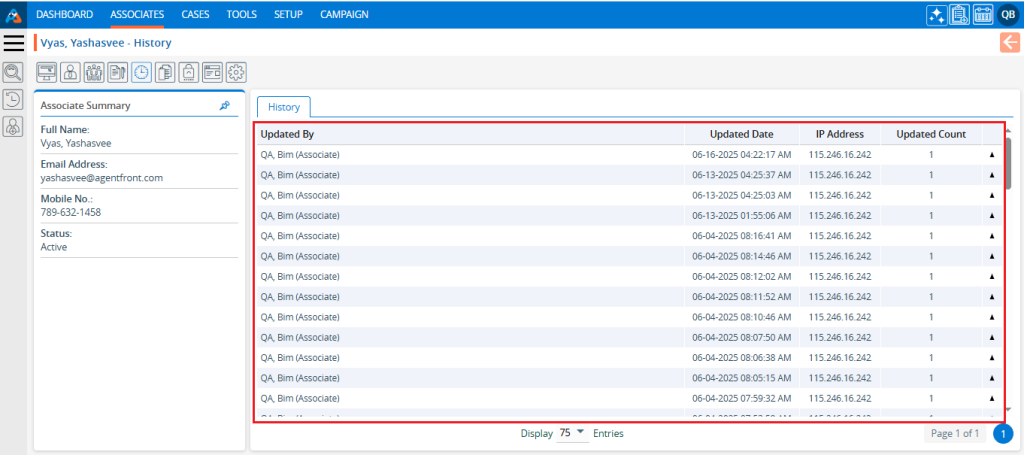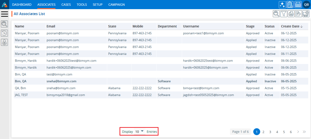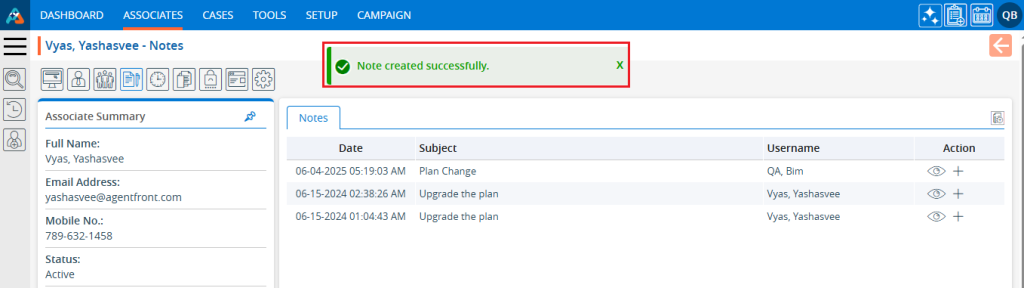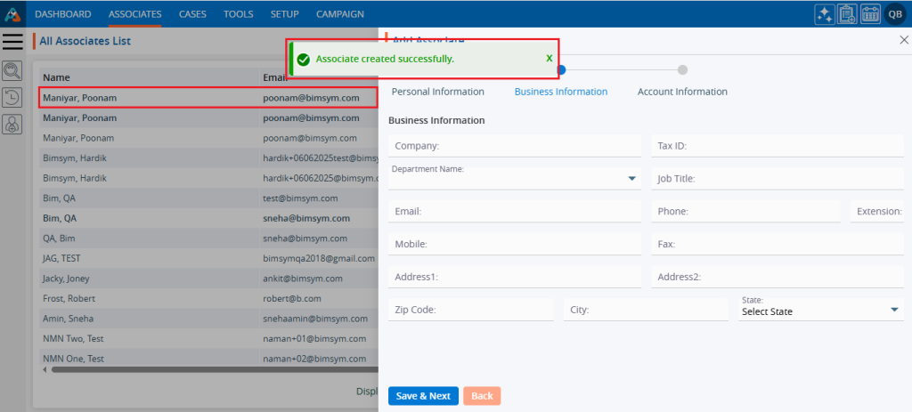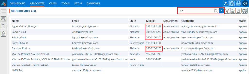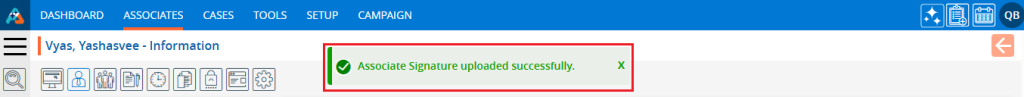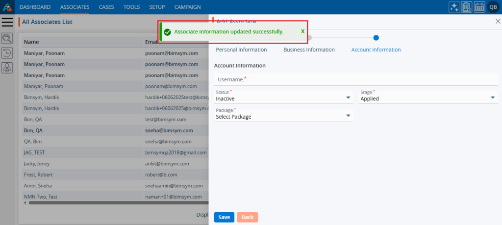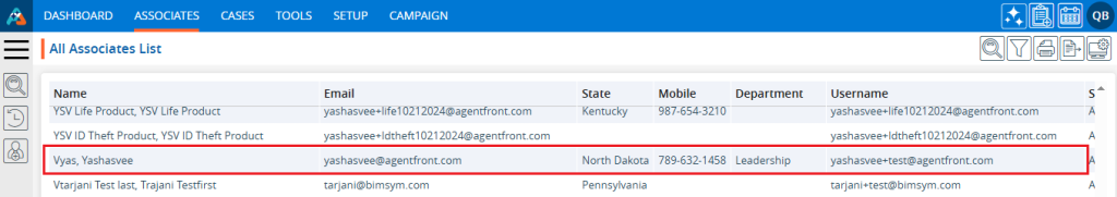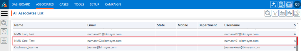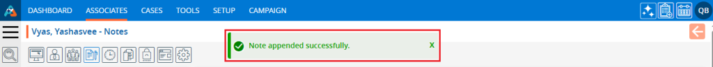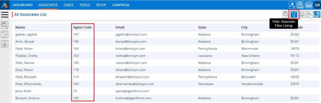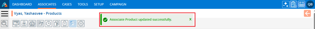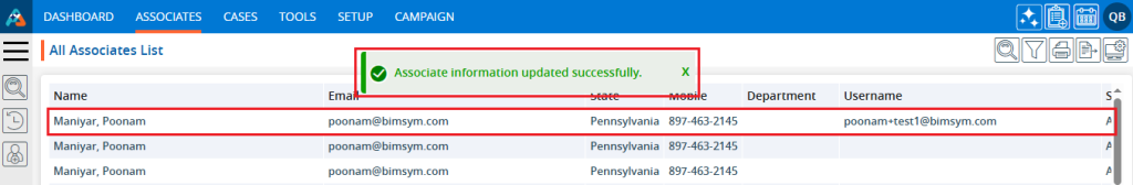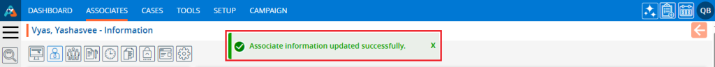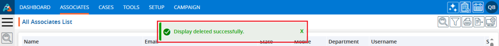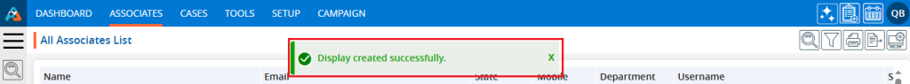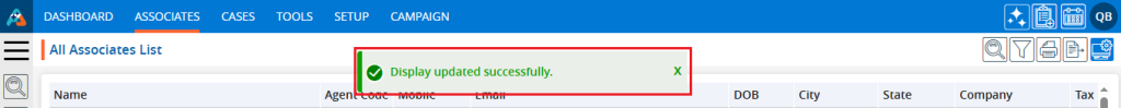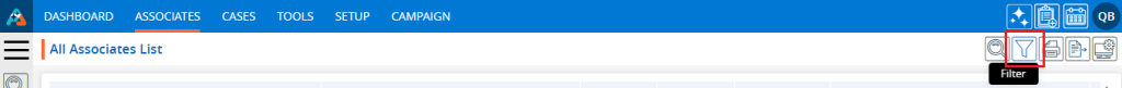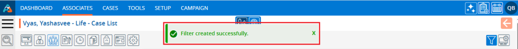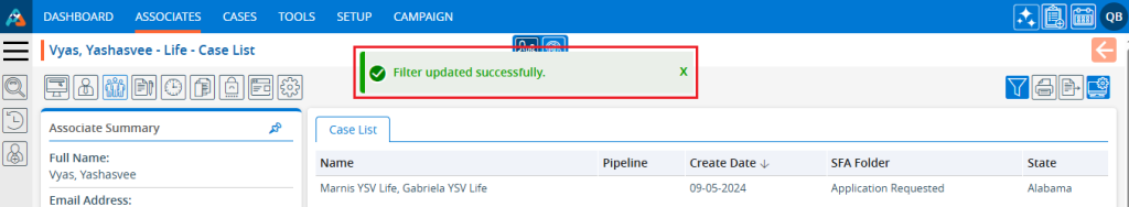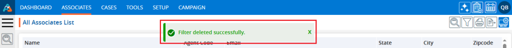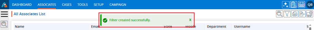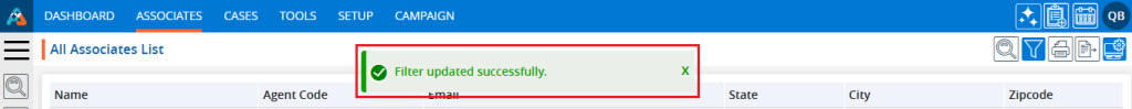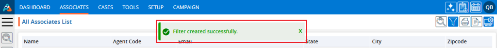 16. The system will generate a confirmation message, and the filter will be applied to the All Associates List.