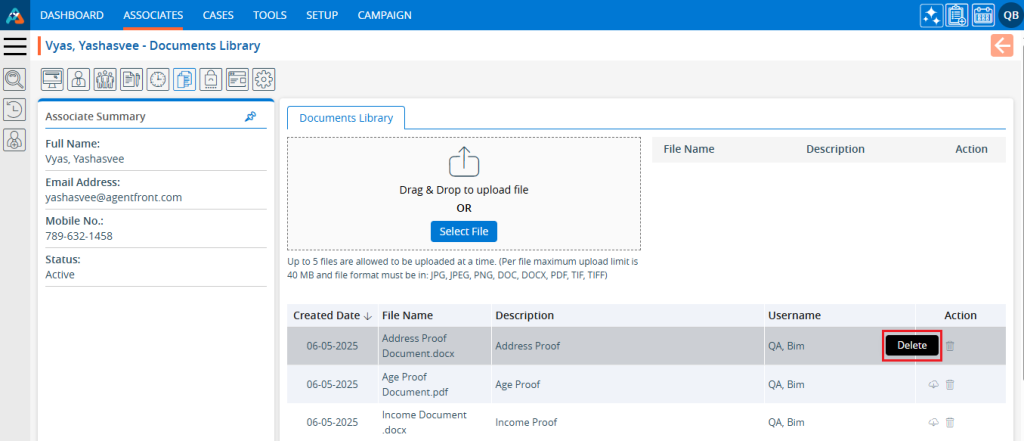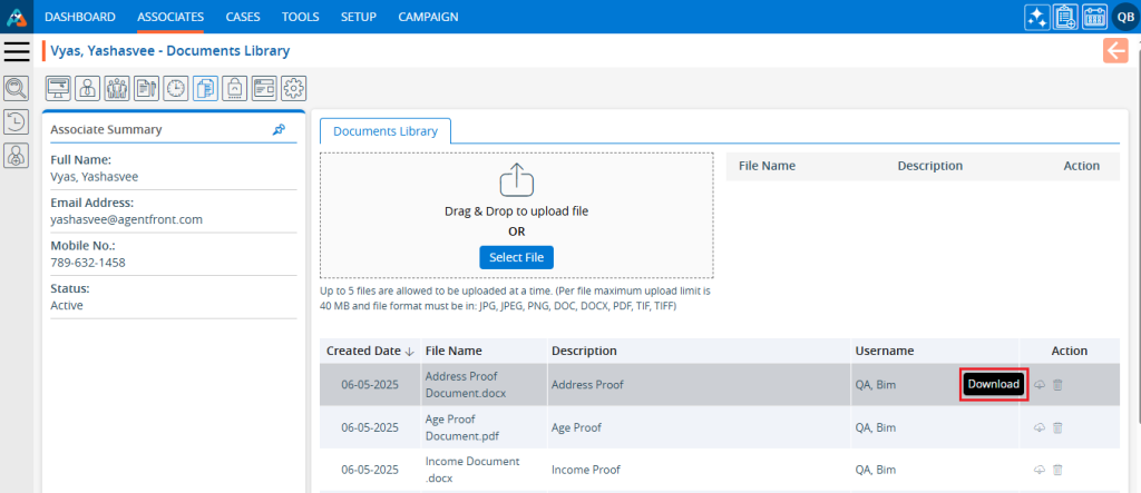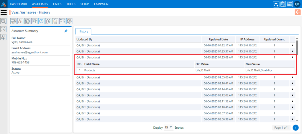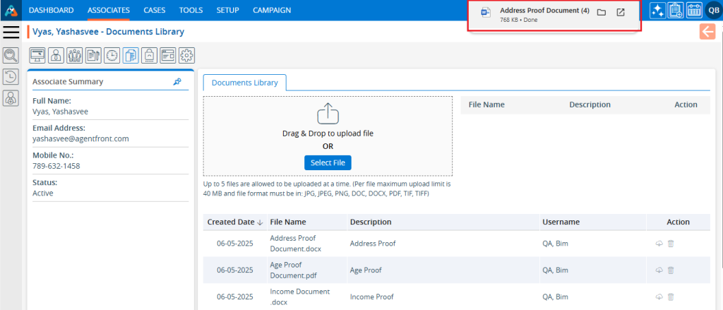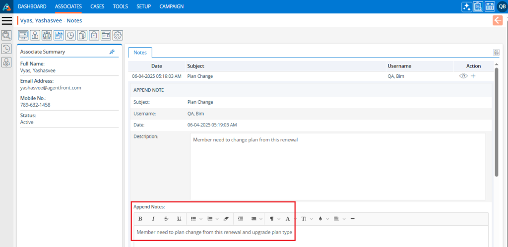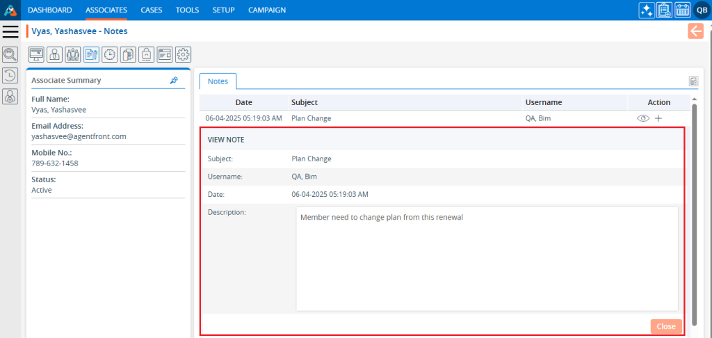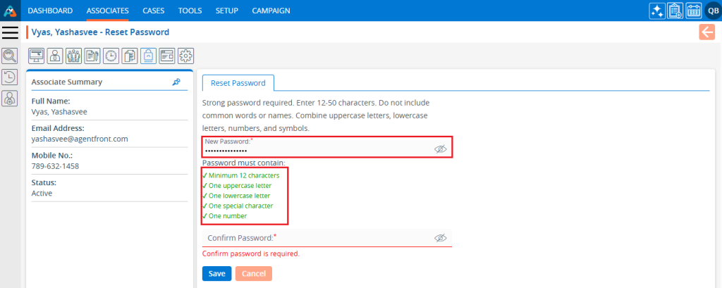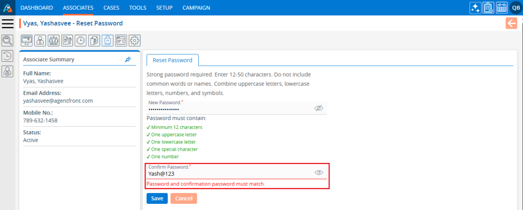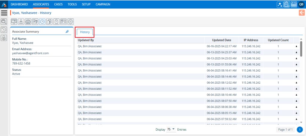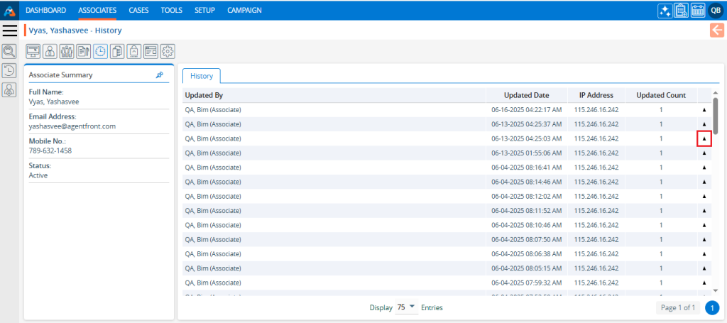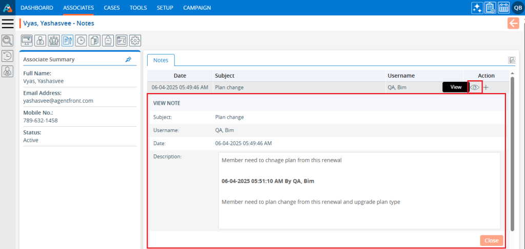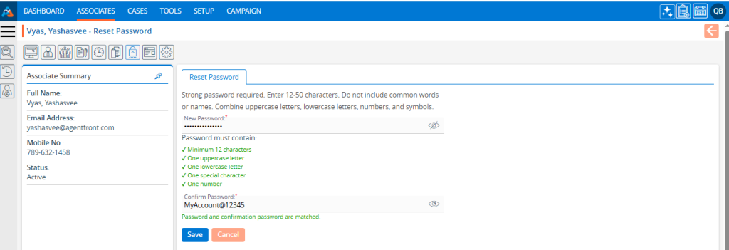 16. The system will generate a confirmation message, and the filter will be applied to the All Associates List.