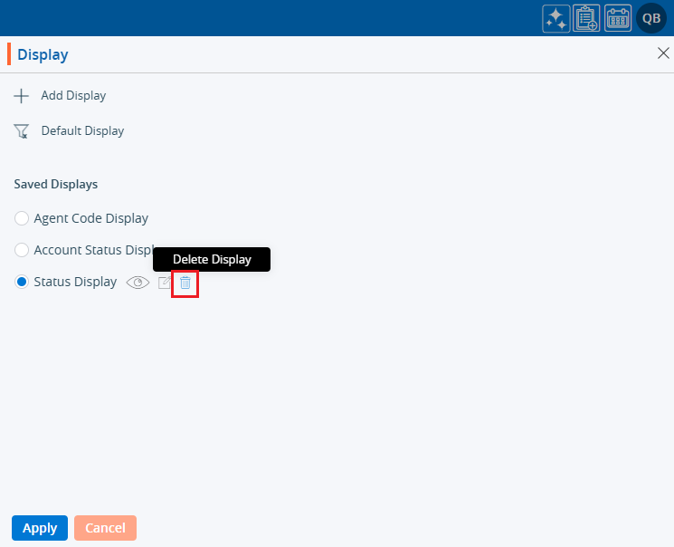 a. Click on the ‘Filter’ again and hover over the ‘Delete’ icon.