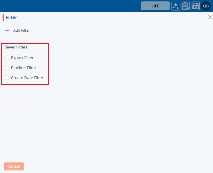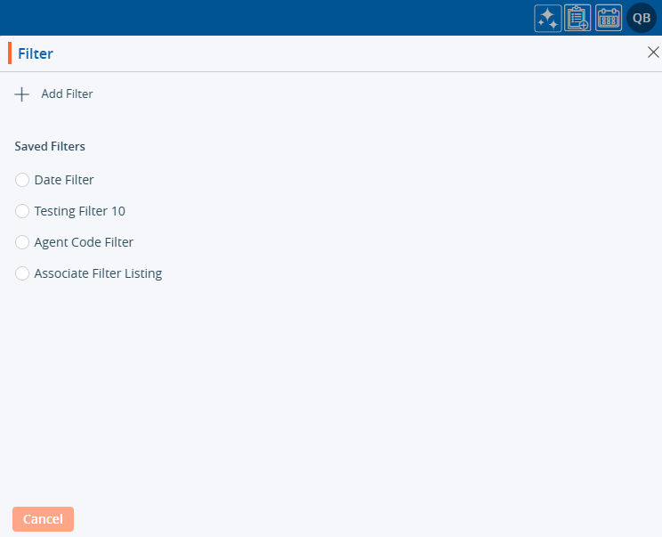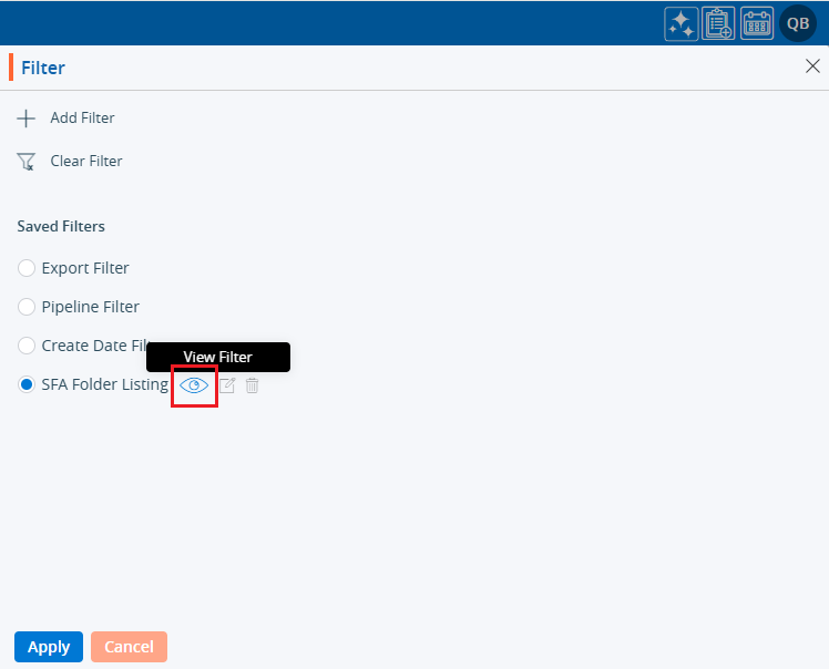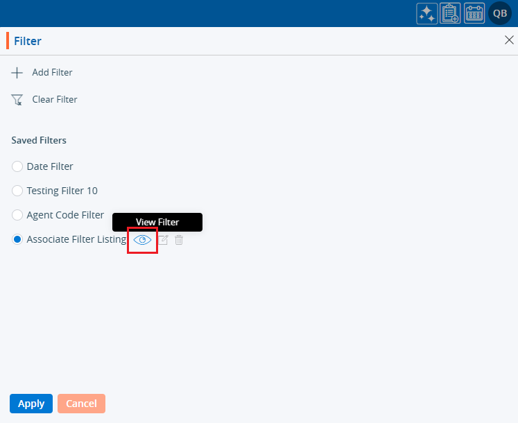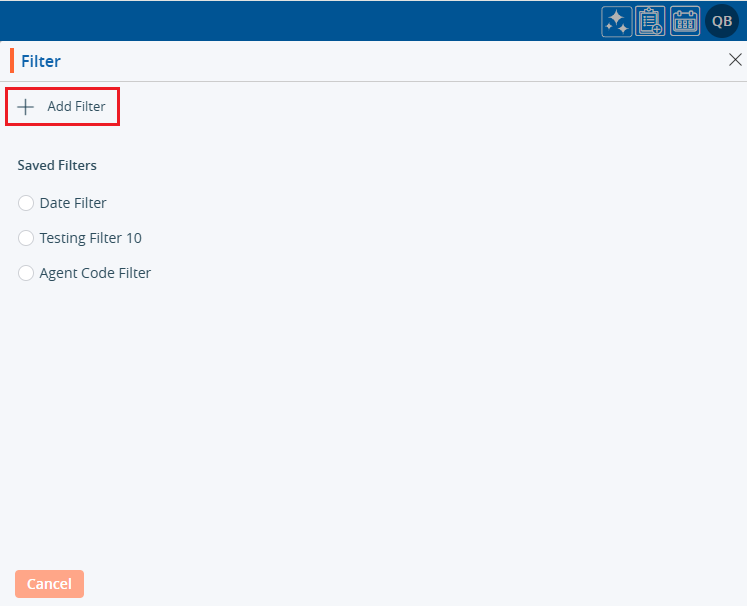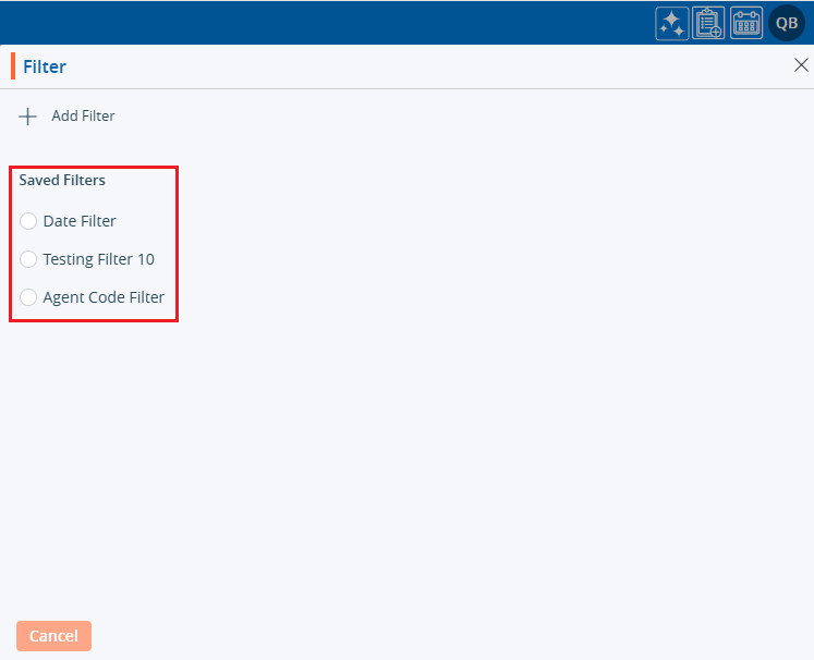 a. Existing filters, if available, will be displayed under the ‘Saved Filters’ section.