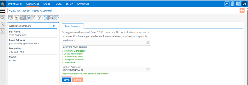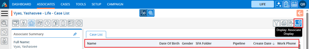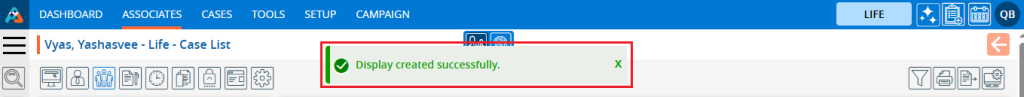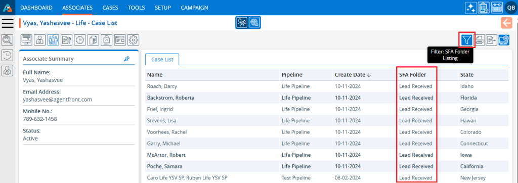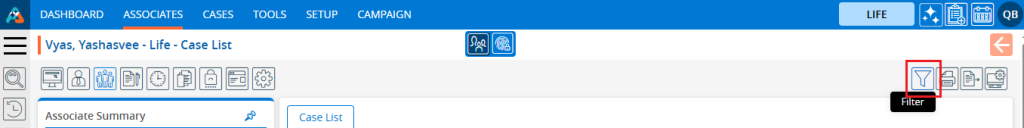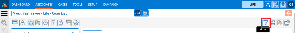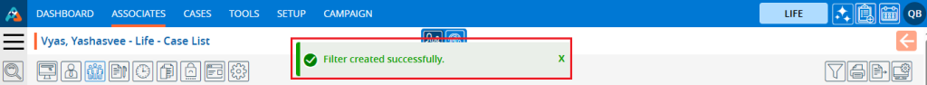 15. Clicking Save & Apply will save the filter under the ‘Filter’ listing and apply it to the ASSOCIATES > Cases List.
