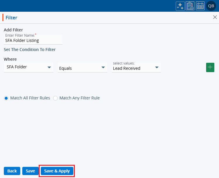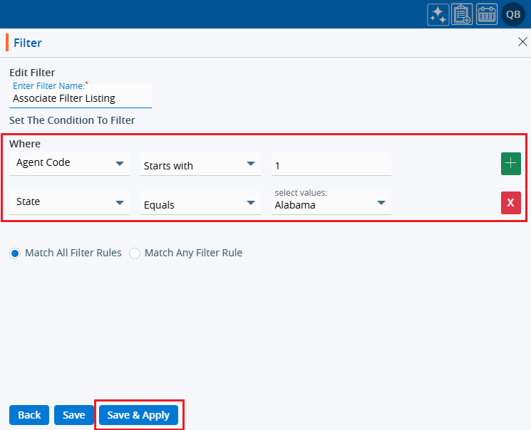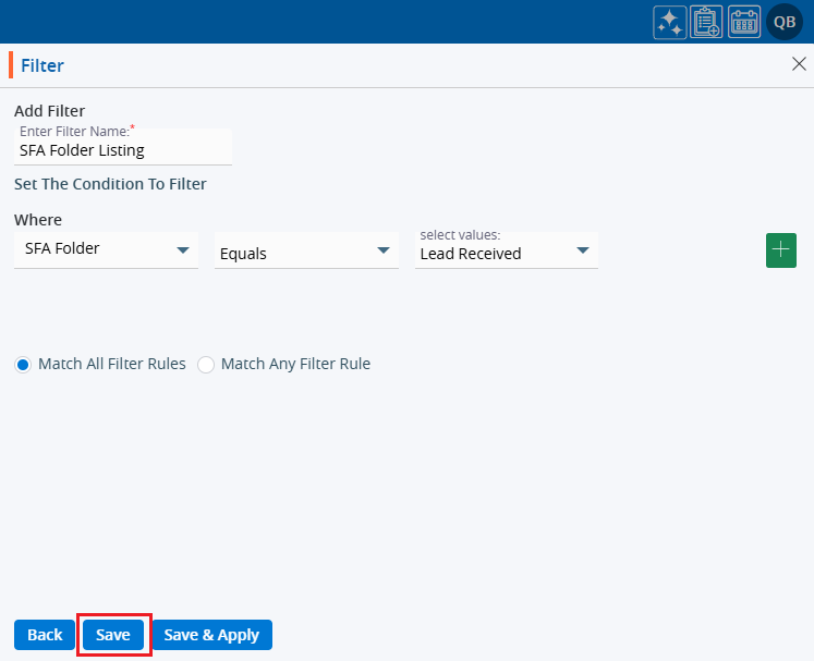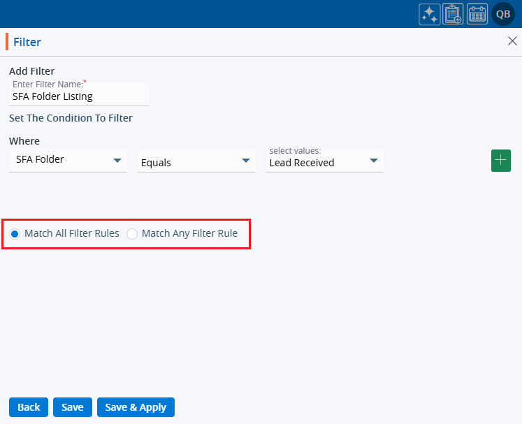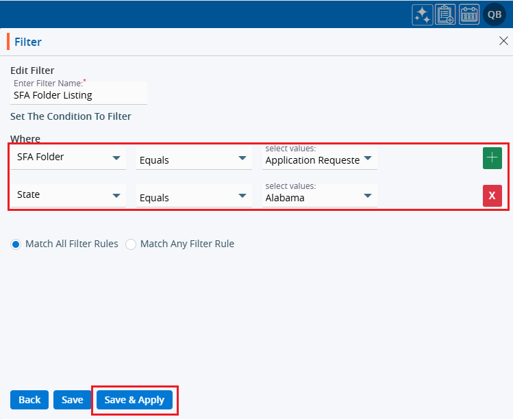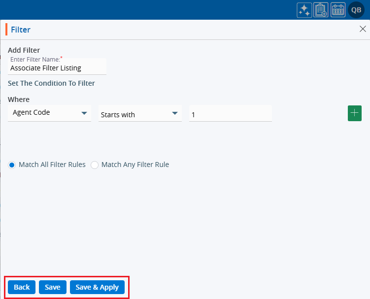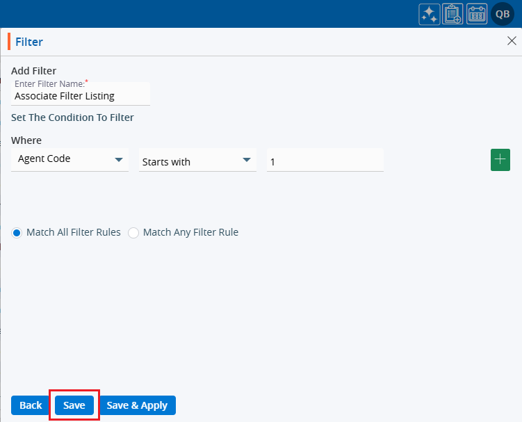10. Choose either ‘Match All Filter Rules’ or ‘Match Any Filter Rule’ based on the needs.