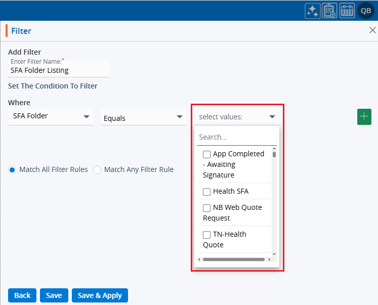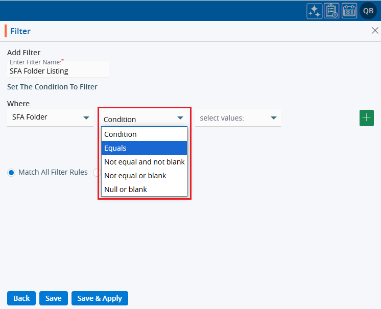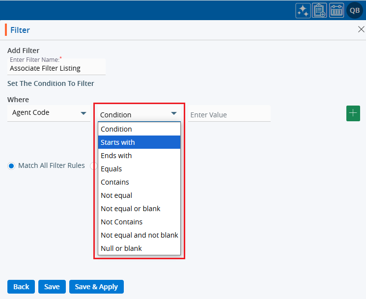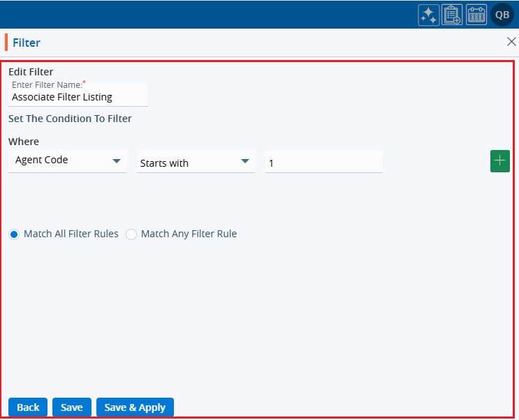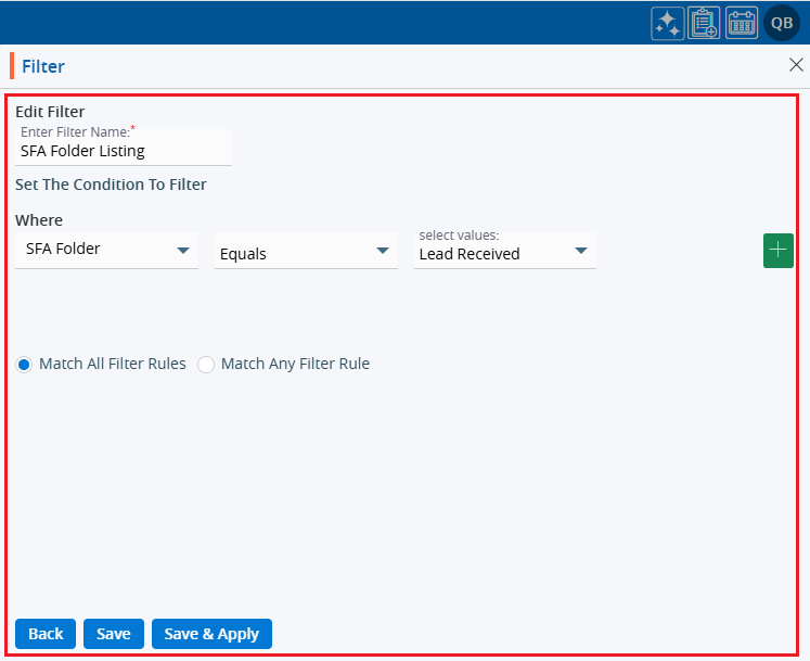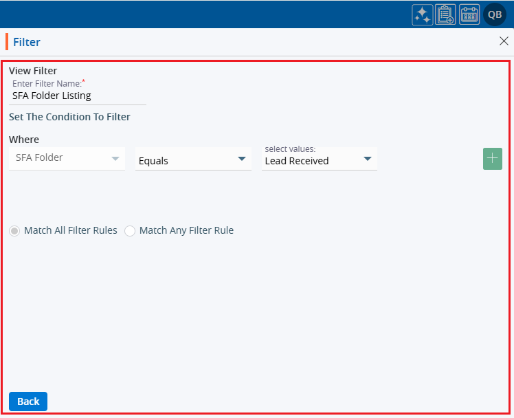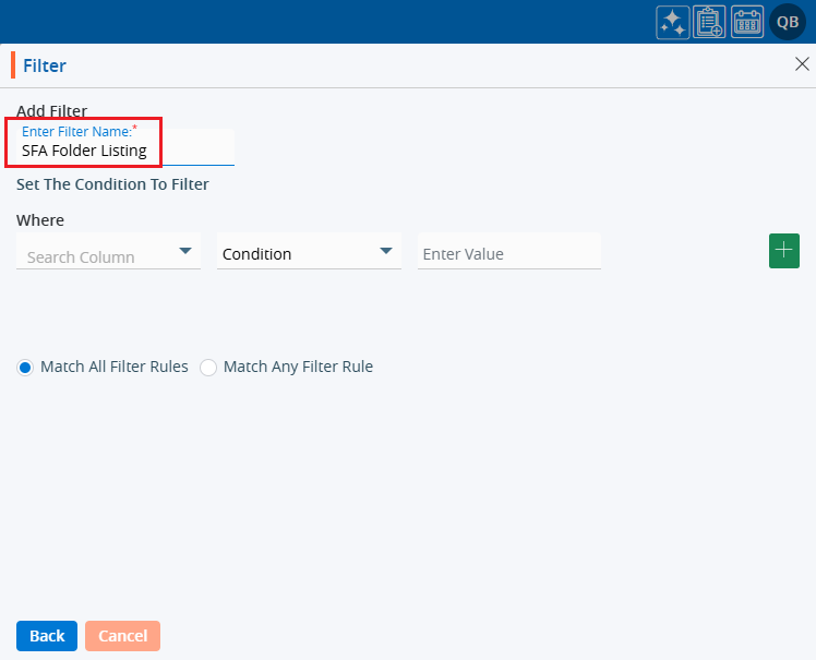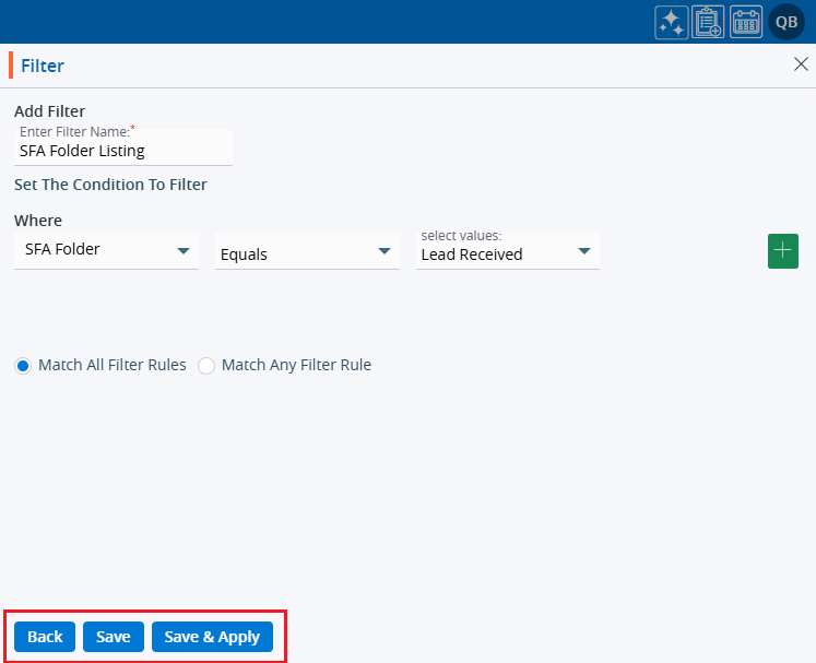 10. Choose either ‘Match All Filter Rules’ or ‘Match Any Filter Rule’ based on the needs.