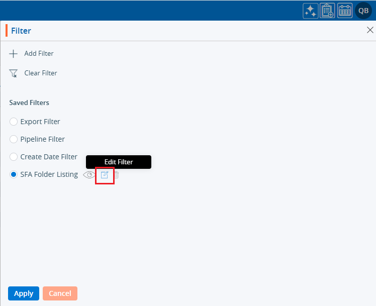 a. Click on the ‘Filter’ again and hover over the ‘Edit’ icon.