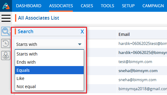 The following are the steps to create and apply customized filters for the ASSOCIATES list: