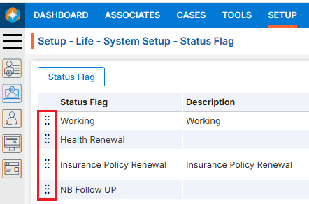 Click and drag the Re-arrange () icon to move up or down the Status Flag to the desired position, then drop it to save the new order.