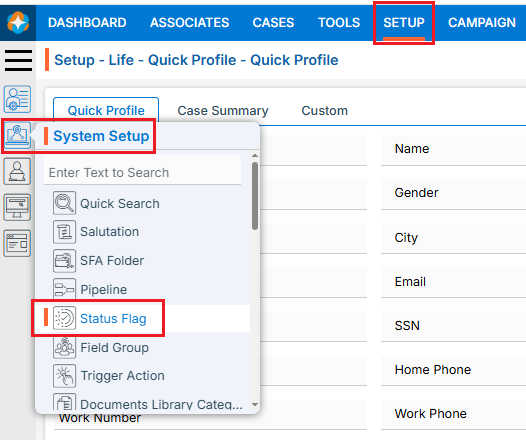 20. The Status Flag will no longer be displayed in the Status Flag drop down in the following two places: ● Cases tab > Case Profile > Quick Profile > Life tab ● Cases tab > Case Profile > Quick Profile > Action tab