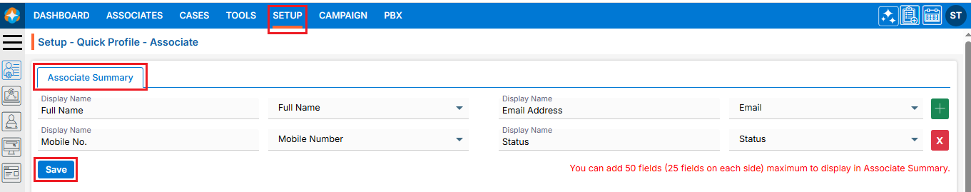 1.Navigate to the ‘SETUP’ tab.
