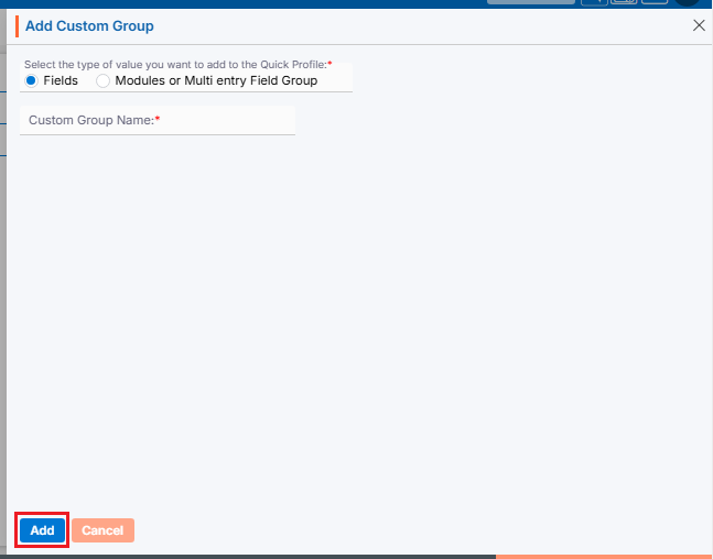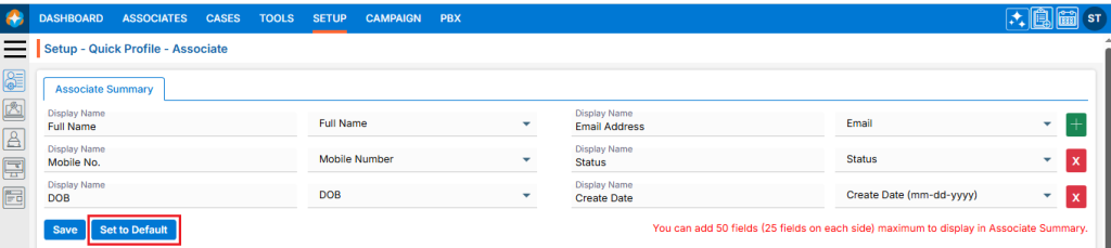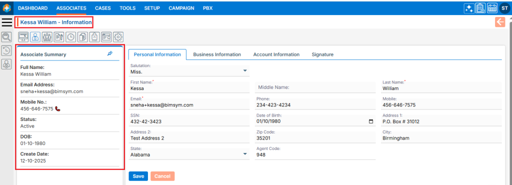 8. Complete the details on the pop-up page: ● Form Title: Enter the desired Form Title. This field allows alphabetical, numerical, spaces and special characters except html tags (< and >). (Limit is a maximum of 35 characters). ● Description: A description for the Form needs to be added in accordance with the Form Title. (Limit is a maximum of 500 characters) ● Form For: This field has three options—Add, Edit, and View. Each option functions separately. The Add option is selected by default and remains selected. i. If the form is created using the ‘Add’ option, the Form Number will begin with ‘CF’. Additionally, once the form is created using this option, it will be placed according to the selection made in the ‘Show This Form’ drop-down menu. ii. If the form is created using the ‘Edit’ option, the Form Number will begin with ‘UF’. Additionally, when the form is created using this option, the user can add and update details for the form, regardless of where it is placed, based on the selection made in the ‘Show This Form’ drop-down option. iii. If the form is created using the ‘View’ option, the Form Number will begin with ‘VF’. Additionally, when the form is created using this option, the user can only view the details for the form, regardless of where it is placed, based on the selection made in the ‘Show This Form’ drop-down option. ● Default SFA: This field will only be enabled when the ‘Add’ option is selected for the ‘Form For’ field. Select the SFA name from the dropdown menu. When a profile is generated using the ‘Add Case’ or ‘Web Form’ option, that profile will be moved to the selected SFA folder. ● Default Pipeline: This field will only be enabled when the ‘Add’ option is selected for the ‘Form For’ field. Select the Pipeline name from the dropdown menu. When a profile is generated using the ‘Add Case’ or ‘Web Form’ option, that profile will be moved to the selected Pipeline. ● Form Status: This field has two options: Active and Inactive. When the Active option is selected, the form will be available in the locations as per the setup. With the Inactive option selected, the form will not be applicable anywhere. Select the desired option. ● In Columns: This field has three options: 1, 2, and 3. The form will be generated in the column corresponding to the selected option. Select the desired option. ● Show This Form: i. If the ‘Add’ option is selected for the field ‘Form For’, the following three options will be enabled in this drop-down: None, Add Case, and Web Form. a. With the None option, the form will not be applicable anywhere. b. With the Add Case option, the form will be available under the CASES > Left side Add Case menu. c. With the Web Form option, the form will be available under SETUP > Lead Generation > Web Forms > Add Web Form page. ii. If the ‘Edit’ or ‘View’ option is selected for the field ‘Form For’, the following four options will be enabled in this drop-down: None, Quick Profile > Tabs, Quick Profile > Top right sub header and Information Tab. With the Edit option, the form will be editable, and with the View option, the form will not be editable. a. With the None option, the form will not be applicable anywhere. b. With Quick Profile > Tabs option the form will be available under the Cases > Any case’s Quick Profile. c. With Quick Profile > Top right sub header option the form will be available under the Cases > Any case’s Header Menu > Top right sub header d. With Information Tab the form will be available under the Cases > Any case’s Information Tab. For example, the form here is created with the following options: ● Form For with Add option ● Active Status ● 3 Columns ● Show this form with Add Case option