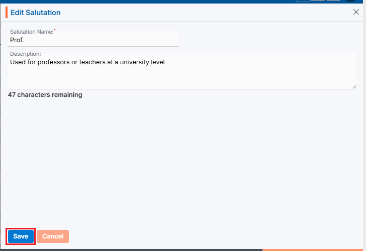 Clicking Edit () icon will open the selected Status Flag in edit mode with title Edit Status Flag. Update the required details and click Save.