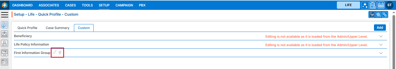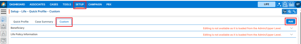 ● Cases tab > Case Profile > Quick Profile > Life tab ● Cases tab > Case Profile > Quick Profile > Action tab