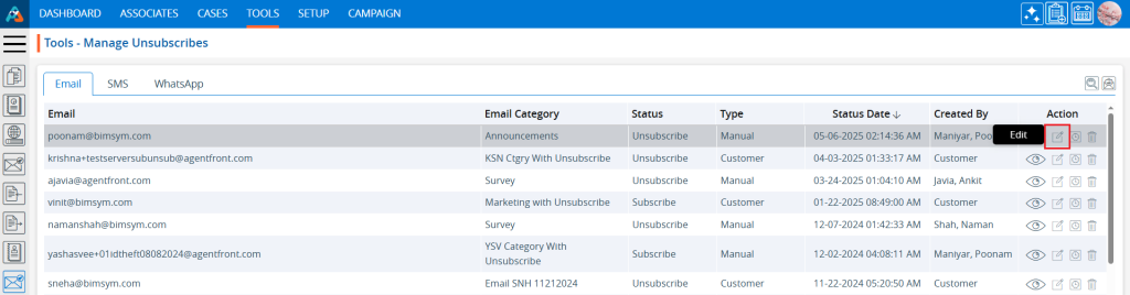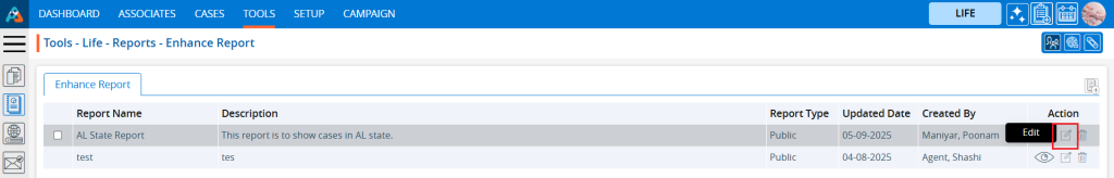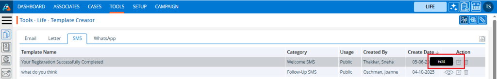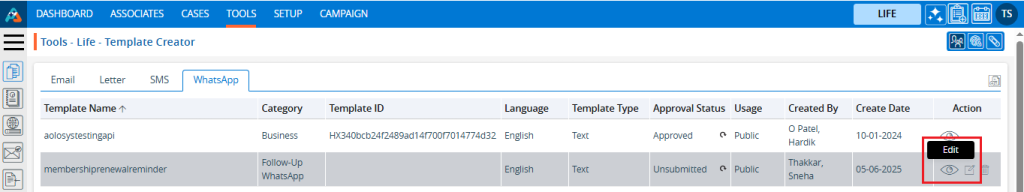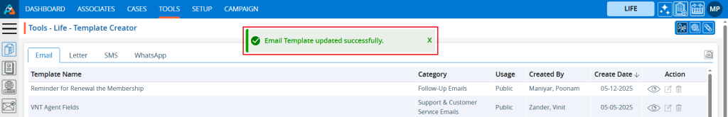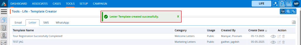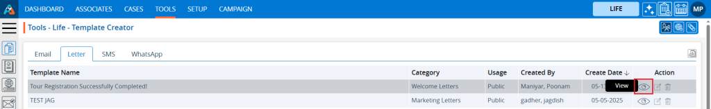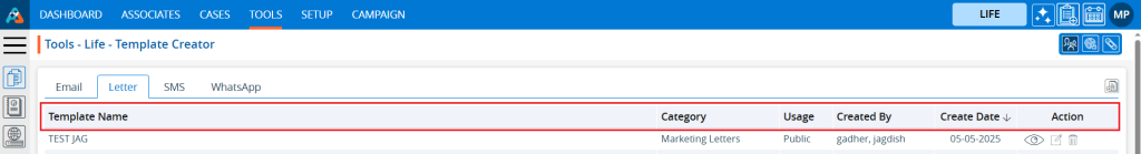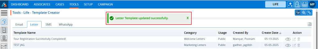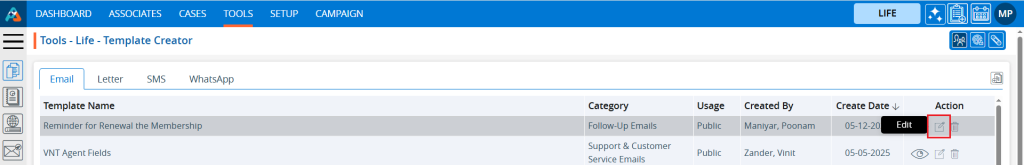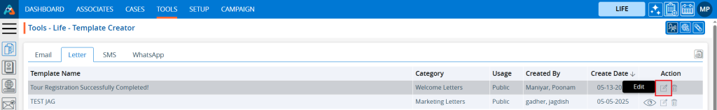 - From the list click on Edit () icon from the Action column for the letter you want to edit/change