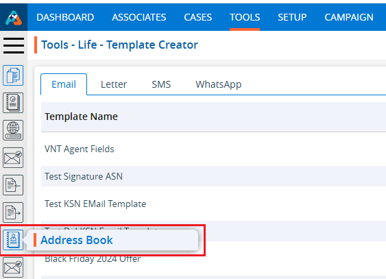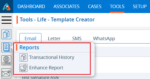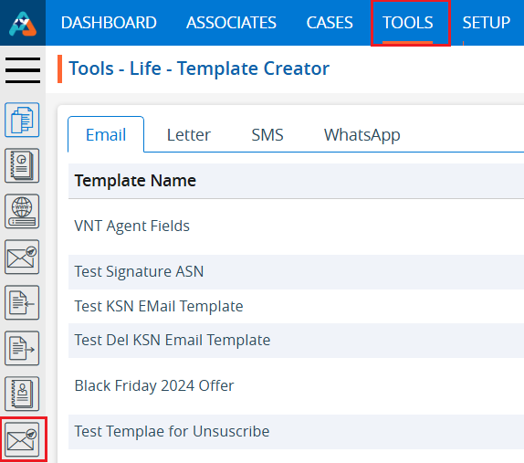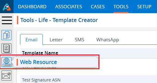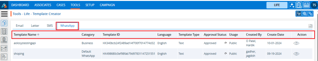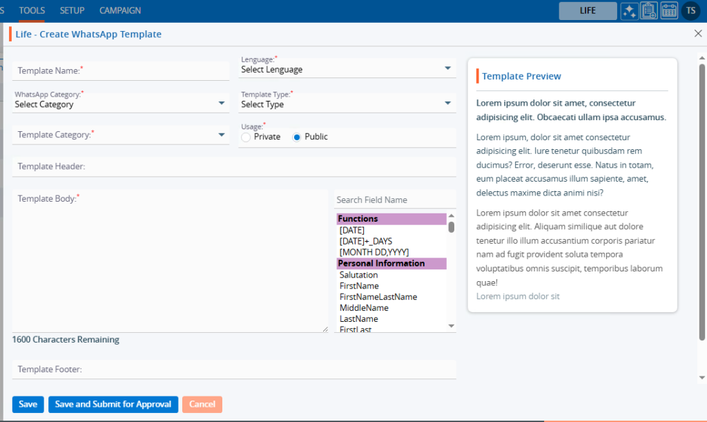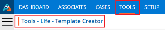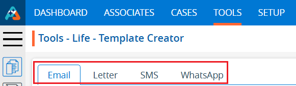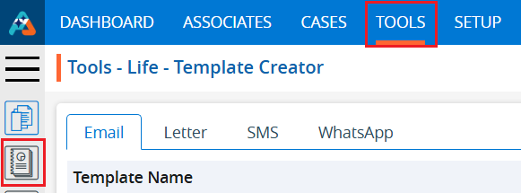 - It will open Template Creator with multiple tab (Based on the access rights)