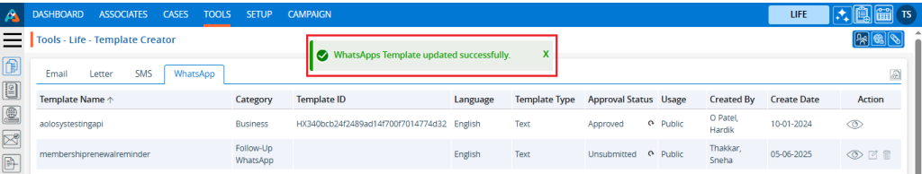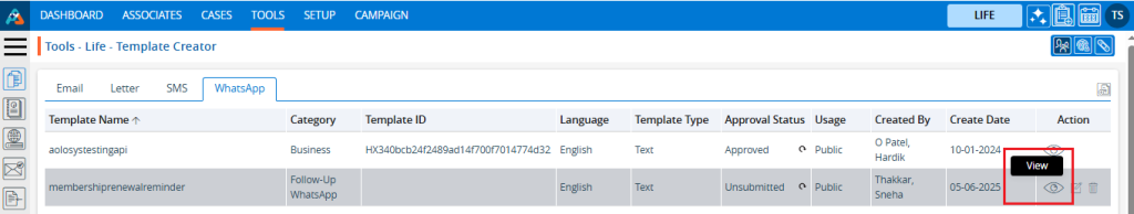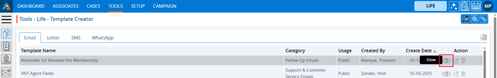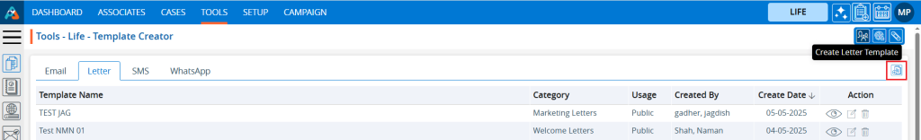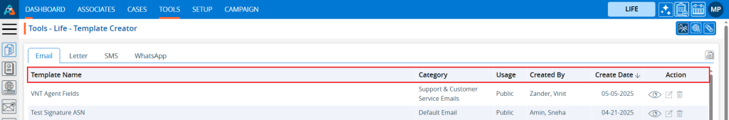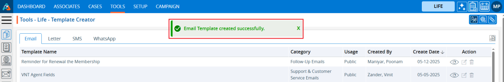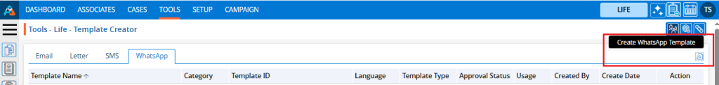 - Click on ‘Create Template Creator’ icon from the Top Right side of the list.