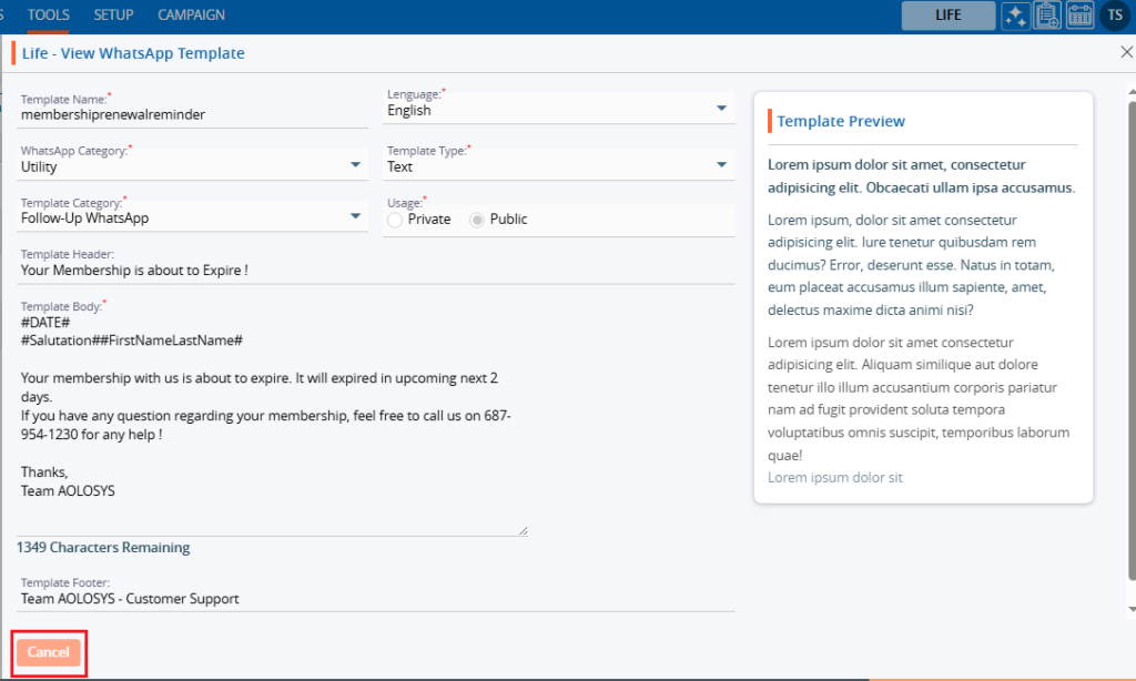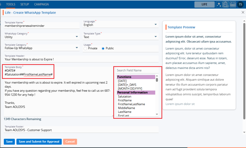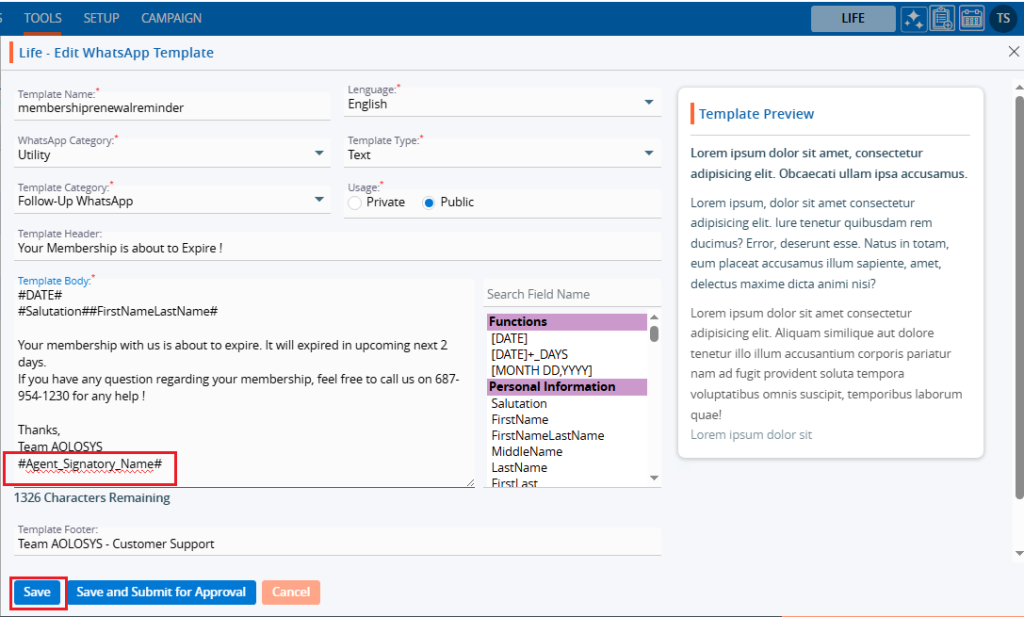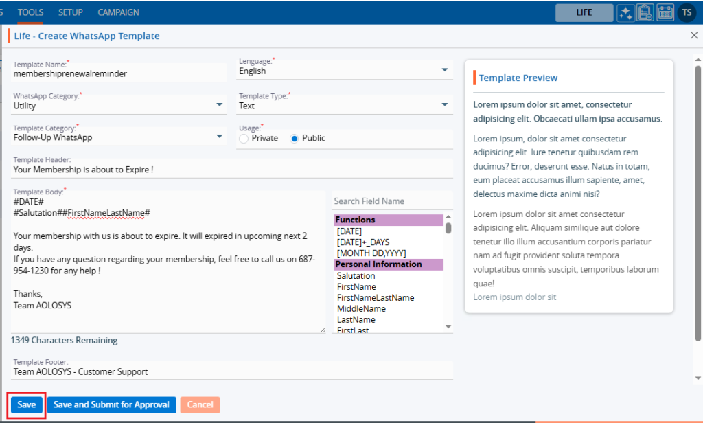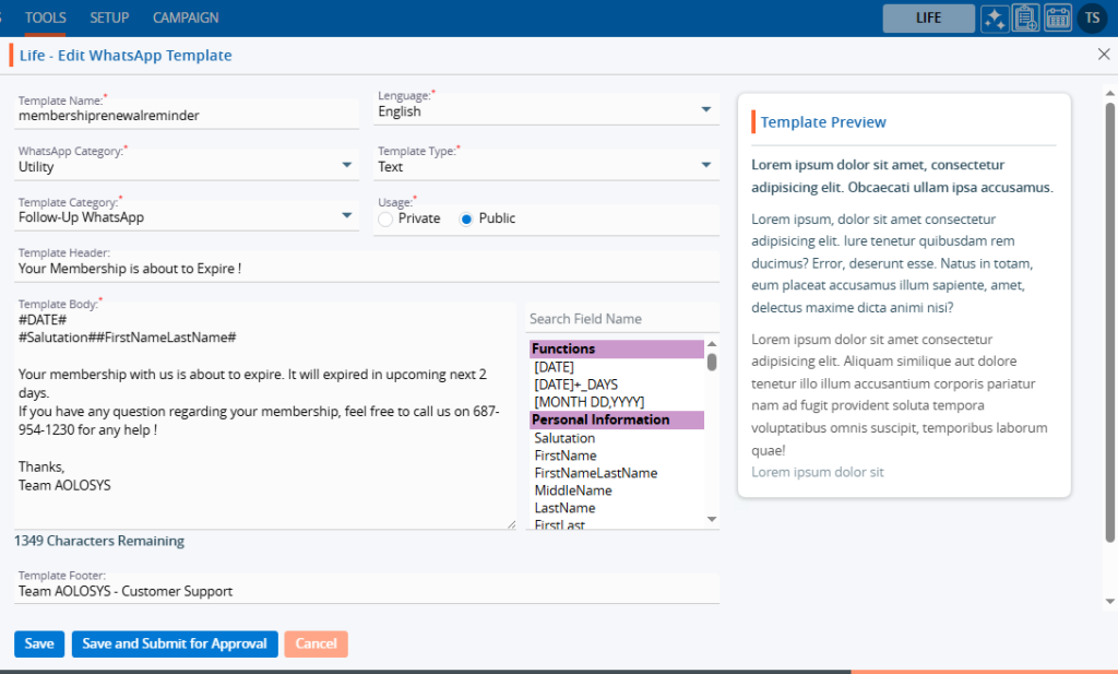 - Template Category: Choose from the drop-down list. (Categories can be managed in Setup → System Setup → Template Category.)