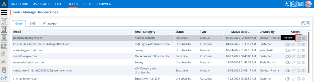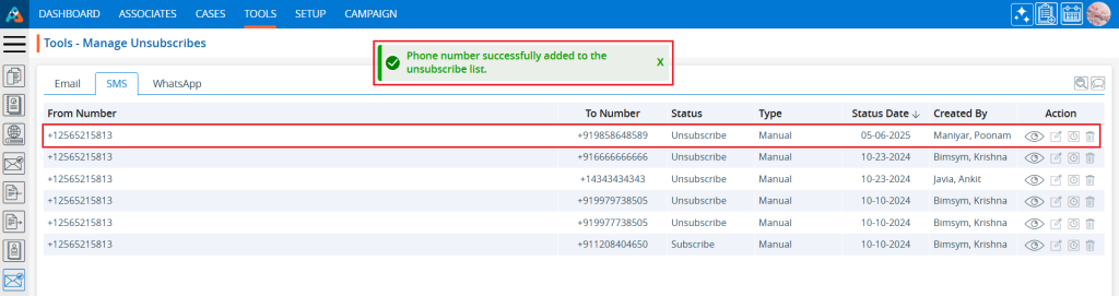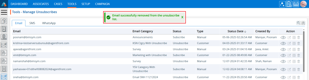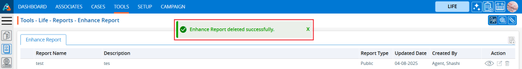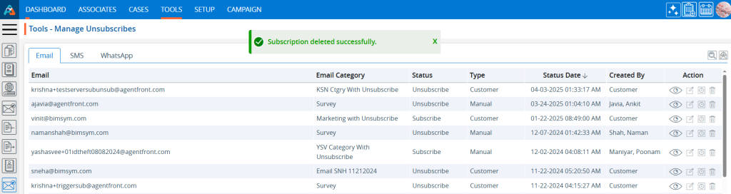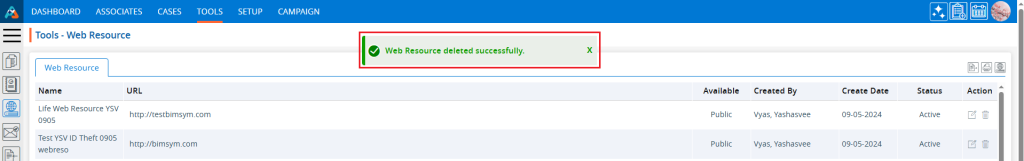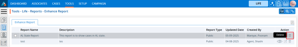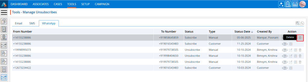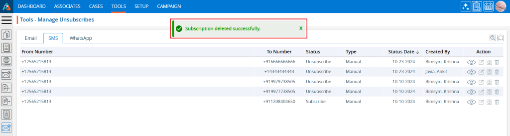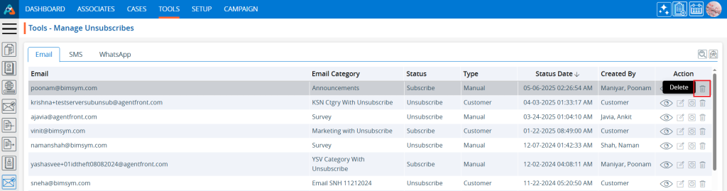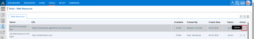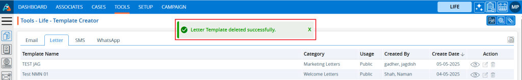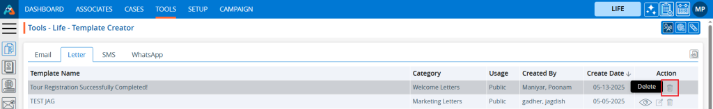 - From the list click on Delete () icon from the Action column for the letter you want to delete.