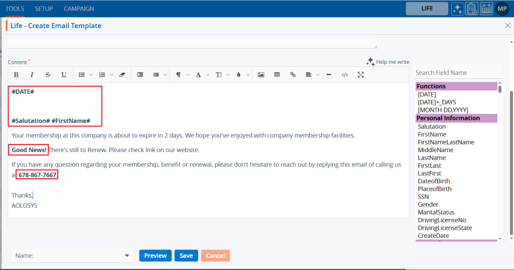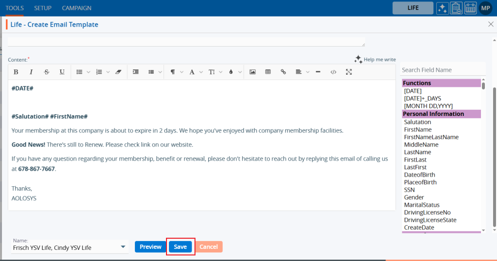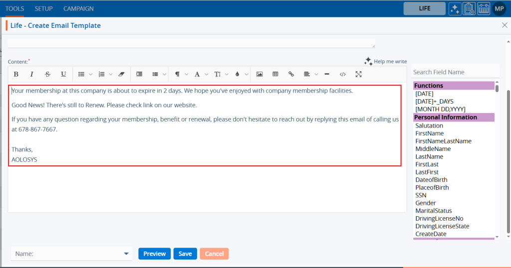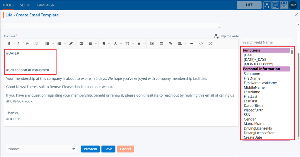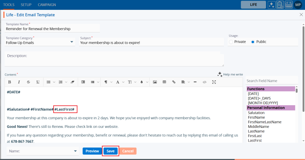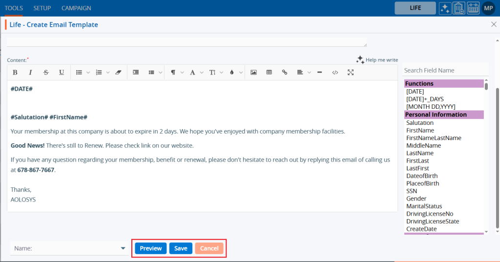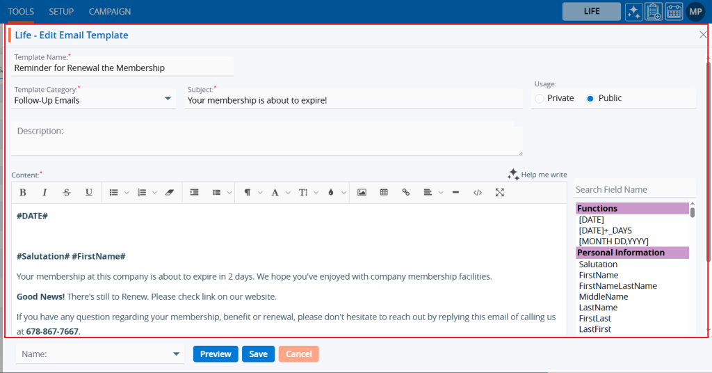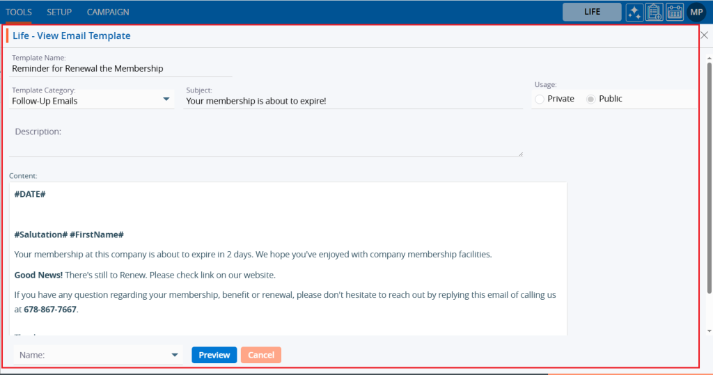 - Preview the letter: choose a sample person, then click Preview to verify that letter format and placeholders resolve correctly.