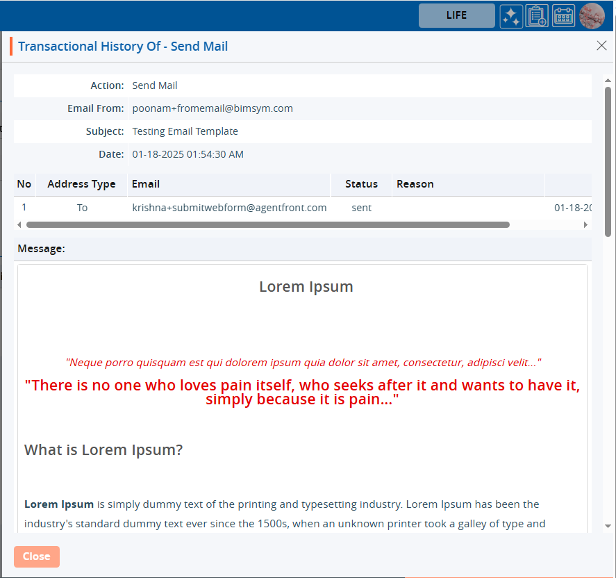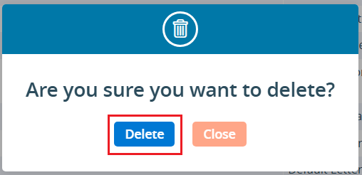 - It will ask for confirmation in popup, click on Delete button to delete letter otherwise click on Close button.