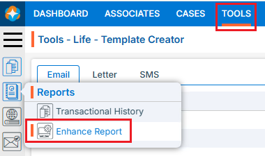 3. By clicking on Transactional History a new page titled ‘Tools – Life – Reports – Transactional History’ will open. This page will provide dropdown menus to select users and tasks by date.
