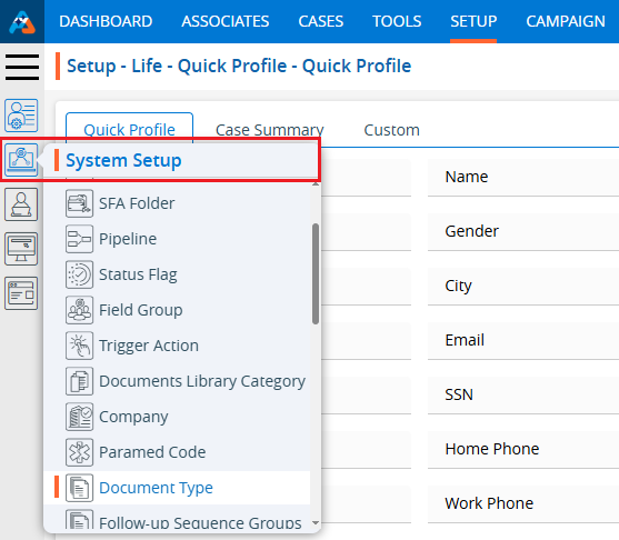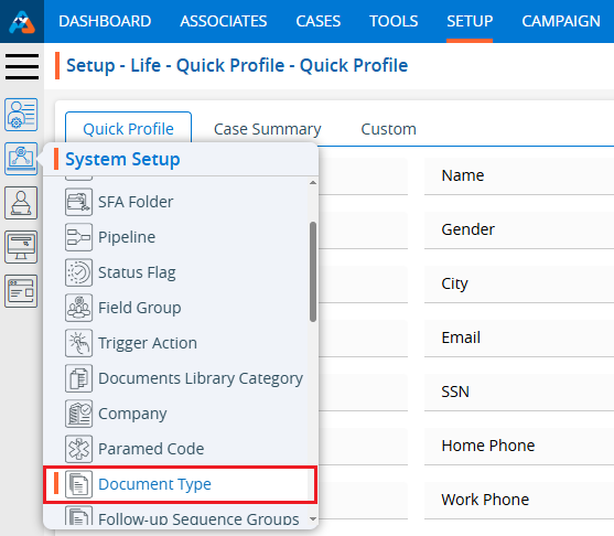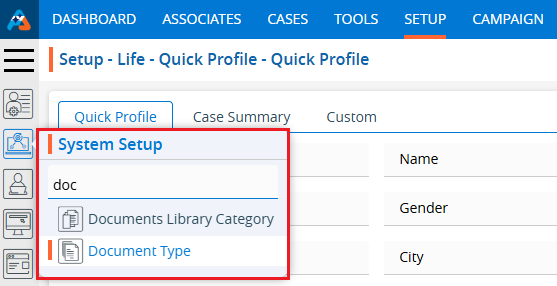 3. Click on the ‘Document Type’ option in the System Setup menu.