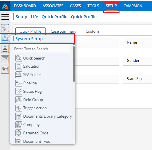 1. Navigate to the ‘SETUP’ tab and click on ‘System Setup’ in the left-side panel.