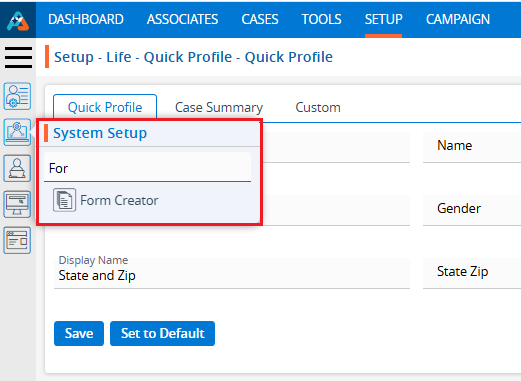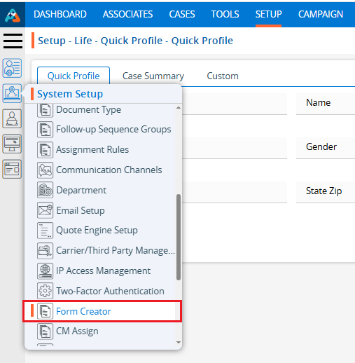 2. Click on the ‘Form Creator’ option in the System Setup menu.