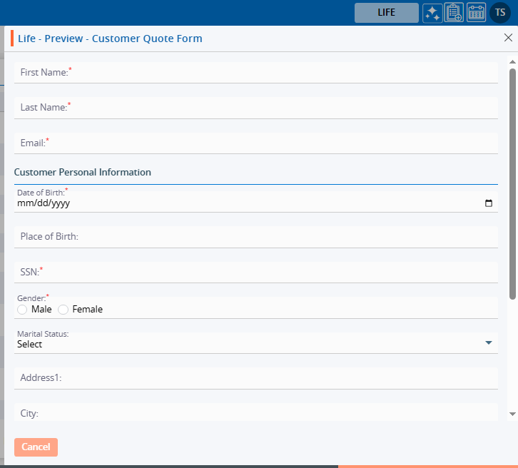 34. After clicking the Preview button, a pop-up window will open, and the user can preview the created form view.