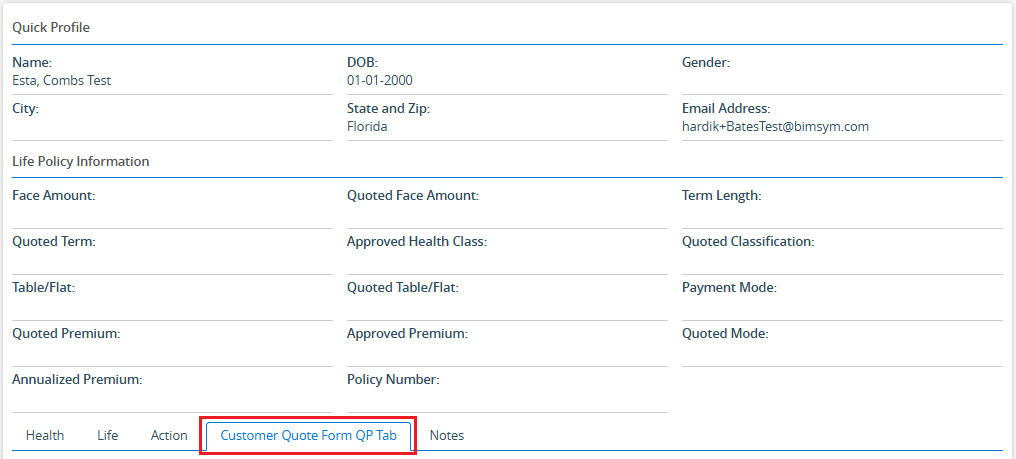 b. With Quick Profile > Tabs option the form will be available under the Cases > Any case’s Quick Profile.
