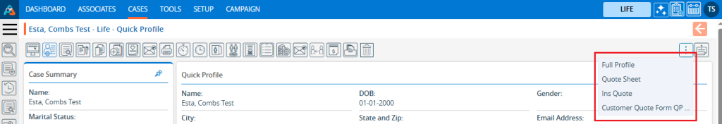 c. With Quick Profile > Top right sub header option the form will be available under the Cases > Any case’s Header Menu > Top right sub header