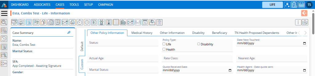 d. With Information Tab the form will be available under the Cases > Any case’s Information Tab.