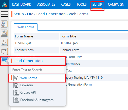 42. Locate the Setup > Lead Generation section and click on Web Form. The form will be available under the ‘From’ dropdown.