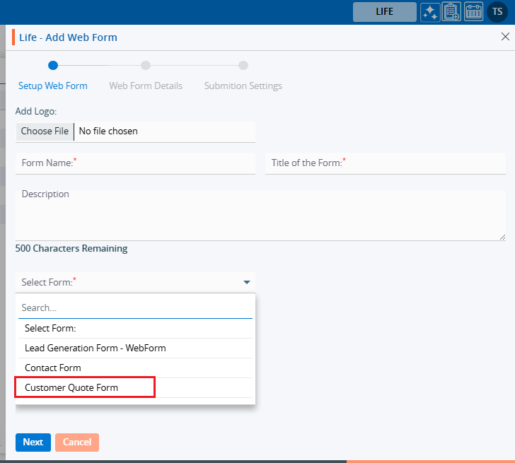 c. With the Web Form option, the form will be available under SETUP > Lead Generation > Web Forms > Add Web Form page.