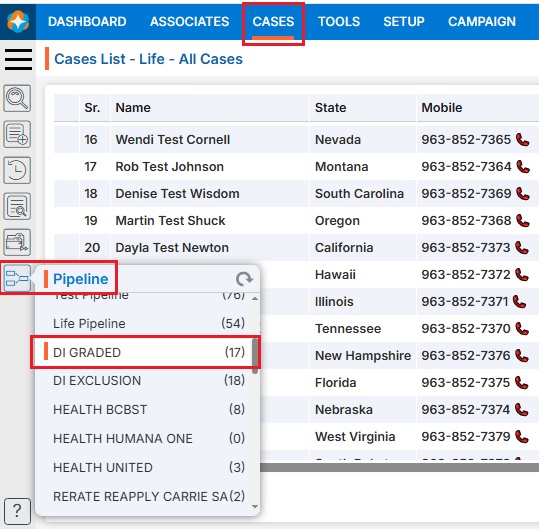 - Select the desired Pipeline. For example, here we have selected ‘DI GRADED’ pipeline and there are 17 cases available in this pipeline