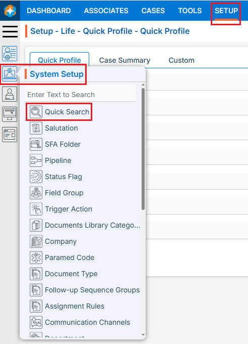- Note: The user can also access this page by typing Quick Search in the Enter Text to Search bar