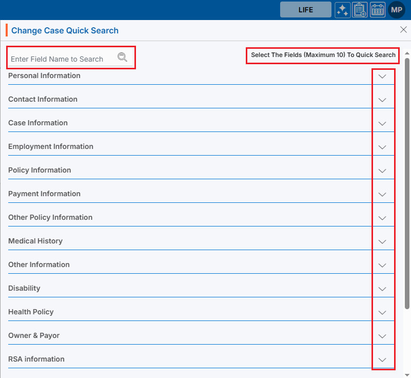 - When clicking on Quick Search, Change Cases Quick Search window will open
