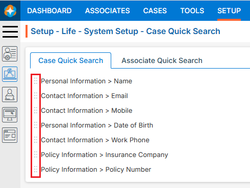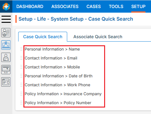 The Cases Quick Search Setup feature allows users to configure which Cases fields are searched for when specific characters are entered in the Quick Search bar. Users can select up to 10 fields and prioritize them to improve search efficiency.